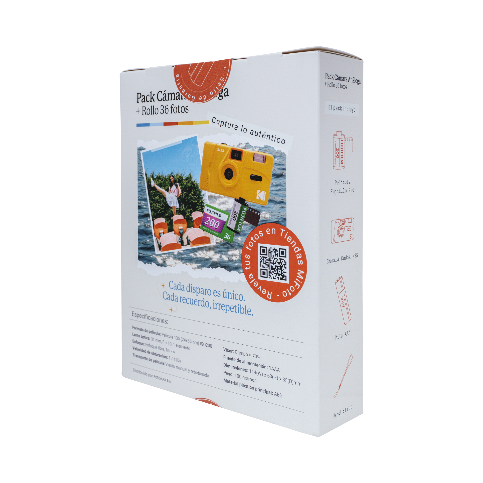 Este pack está pensado para ofrecer una experiencia completa, combinando facilidad de uso, portabilidad y el atractivo clásico de la fotografía en película.