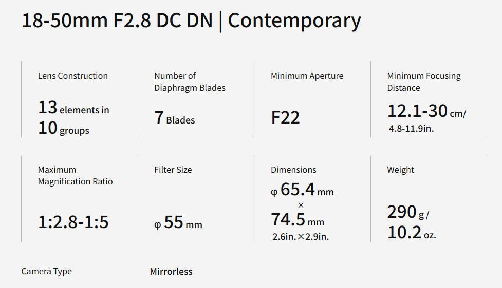 - Apertura máxima: f/2.8