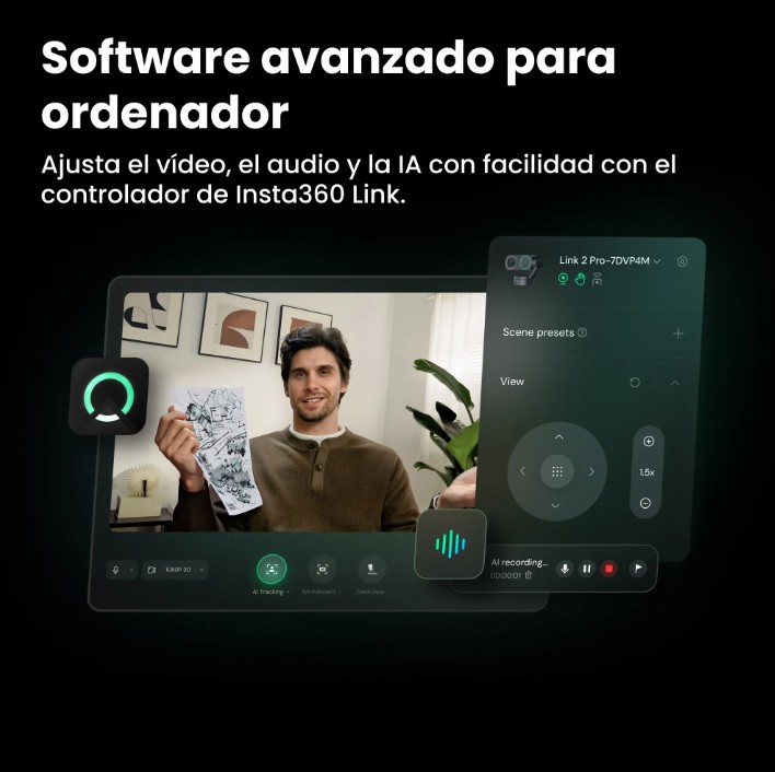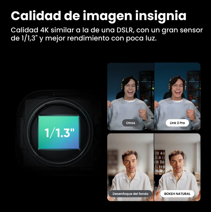 Gracias a sus funciones inteligentes como control por gestos, encuadre automático, modo pizarra, vista de escritorio y fondos virtuales, la Link 2 Pro es una herramienta versátil tanto para trabajo remoto como para creadores de contenido.