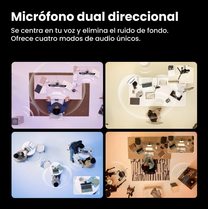Además, incorpora micrófonos duales con cancelación de ruido mediante IA y múltiples modos de captura de audio, lo que garantiza una comunicación clara en videollamadas, streaming o grabaciones profesionales.